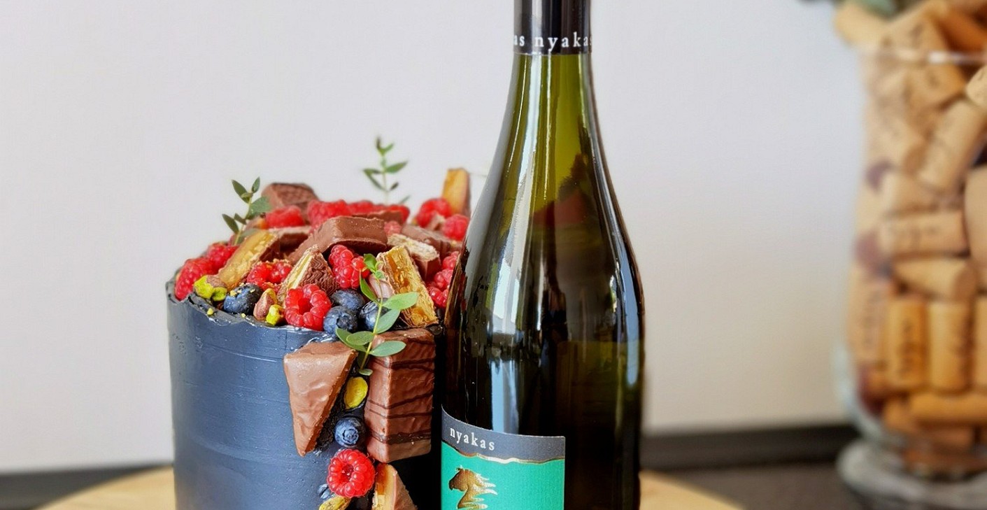 A vőlegény két nagy kedvencét ötvöztük benne: a klasszikus, intenzív csokoládé desszertvilágát és a Nyakaspince „Alig várom” névre keresztelt fehérborát, amely tökéletesen illett ehhez az ünnephez – nevében épp annyi játékos utalással, amennyi egy elegáns legénybúcsúhoz illik.